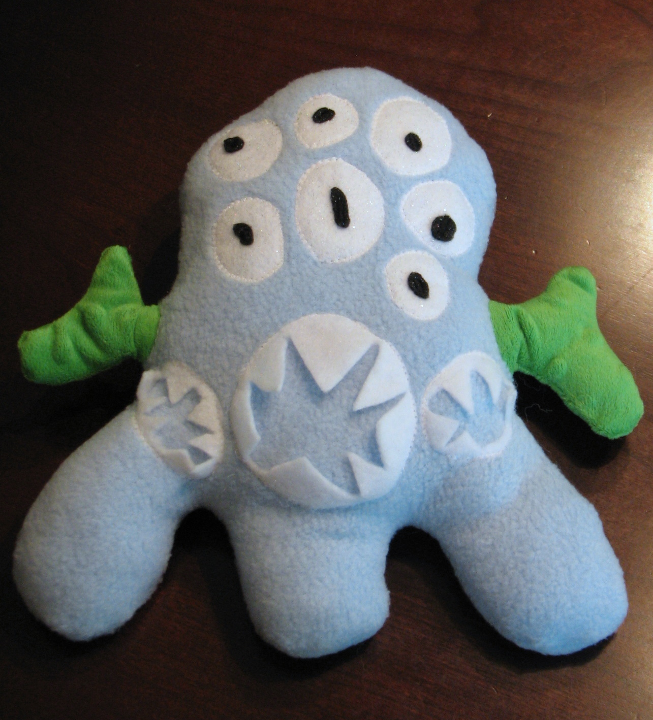 Again, I used a narrow zigzag stitch to attach the mouths. Note: I cut the teeth before attaching the mouths to the body. Wouldn't want to accidentally cut through that blue fabric, would I?